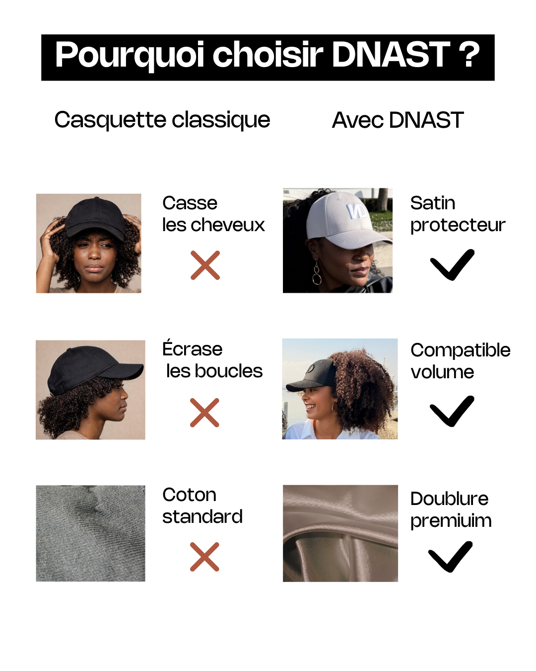 Chaque tête est unique, chaque chevelure a son volume. C’est pourquoi nous avons conçu nos accessoires avec différentes tailles, pour que confort et style ne fassent qu’un. Grâce à notre guide, trouve enfin le modèle qui te va vraiment.